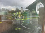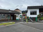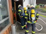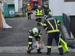Die Übungsannahme wurde so dargestellt, dass aus dem Dachbereich der Stockhalle Flammen schlugen und eine Person im Stüberl vermisst wird. Der Atemschutztrupp konnte die Person aus dem brennenden Gebäude retten und die nach 20 Minuten konnte bereits “Brand aus” gegeben werden.