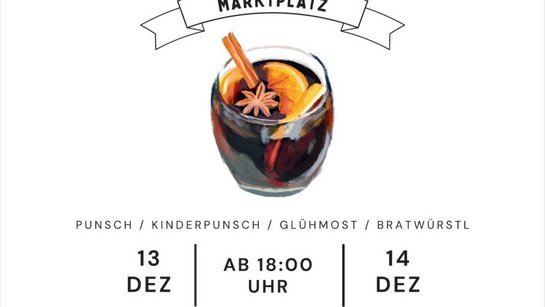 Wie jedes Jahr findet unser Punschstand heuer am 13.+14. Dezember am Marktplatz statt.